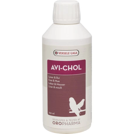 Oropharma Avi-Chol est un complément alimentaire pour oiseaux pour un fonctionnement optimal du foie et une bonne mue. C’est un tonique hépatique à base d’acides amines soufrés, de biotine, de sorbitol et de vitamine B12. Avi-Chol assure une croissance optimale, une pigmentation et un développement parfaits des plumes chez les jeunes oiseaux et une pigmentation et un développement parfaits des plumes chez les oiseaux en période de mue. Ce produit stimule aussi l’élimination des résidus des pigments de couleur et des médicaments. Un fonctionnement optimal du foie est essentiel pour la bonne santé de votre oiseau. Chez les jeunes oiseaux, dont le corps est encore en plein développement, le foie est davantage sollicité en raison d’un plus grand besoin en énergie, en protéines, en vitamines, en graisses et en hormones. Pendant la mue, le plumage est entièrement renouvelé. C’est pourquoi, tous les éléments nécessaires doivent être apportés dans les proportions adéquates et en quantité suffisante. Toute carence se traduit par une mauvaise qualité des plumes. Le foie de votre oiseau est surchargé lors de l’administration de pigments de couleur (canaris de couleur). L’administration de médicaments est également néfaste pour le foie de votre oiseau.D’où l’importance de donner un complément qui soutient les fonctions hépatiques. Avi-Chol contient les substances actives nécessaires (méthionine, choline, biotine, vitamine B12 et sorbitol) pour un fonctionnement optimal du foie avec pour résultat un développement parfait, une brillance et une pigmentation optimale des plumes.