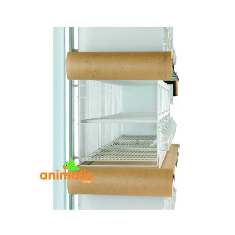 Chaque cage est fournie avec 4 mangeoires, 1 grille de fond, 4 perchoirs, 1 séparation grillagé et 2 parois amovibles opaques.