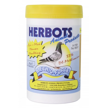 Le produit Methio Forte contient un taux de DL Méthionine (33%) extrêmement élevé, ceci est aussi le taux maximum qui est absorbé par des pigeons, un taux plus élevé n’est pas souhaitable.