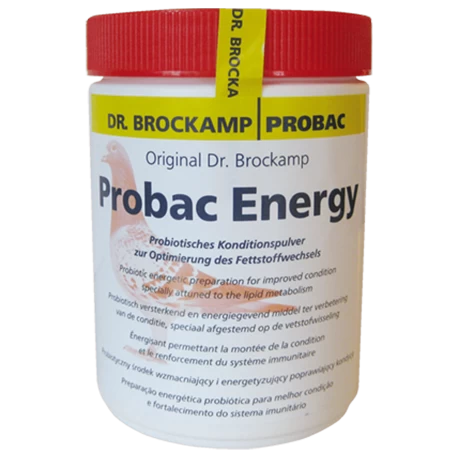 2 x par semaine 5 g Probac Energy (sur 1 kg de nourriture pour environ 25 pigeons par jour)
