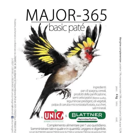 Un pâté équilibré et léger, dans la philosophie UNICA désormais bien connue, avec un mélange de graines fraîches spécialement conçu par BLATTNER pour cette espèce de chardonneret, le maire.